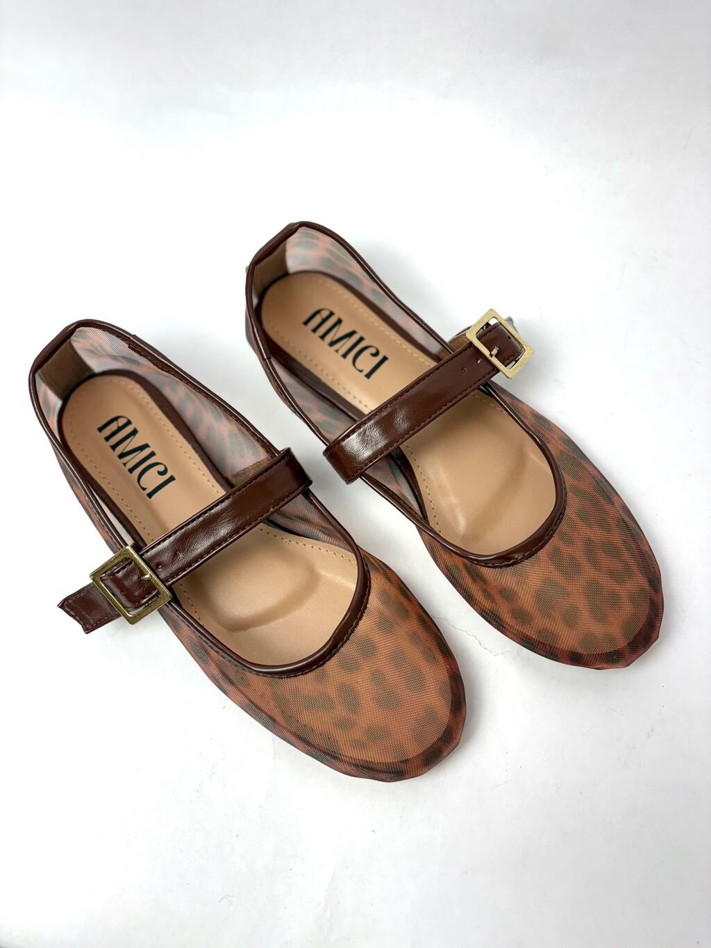 Charlotte - Sapatilha de Telinha com Estampa de Onça e Detalhes no Marrom